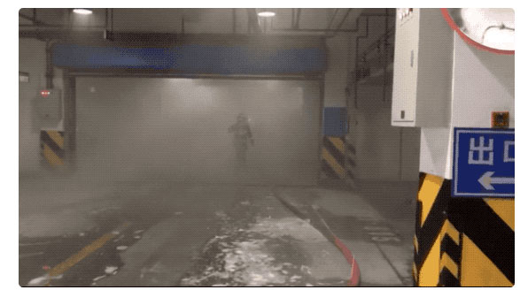 消防人員在5點(diǎn)24分到達(dá)著火現(xiàn)場,一名消防員說:“到達(dá)現(xiàn)場的時(shí)候,地下車庫已經(jīng)被起火產(chǎn)生的濃煙所籠罩了,空氣里有股很刺鼻的焦味?!?