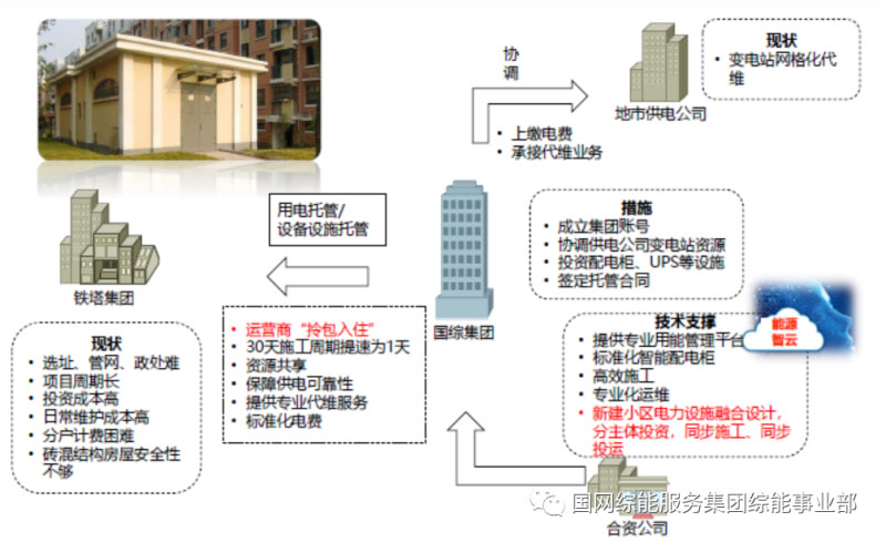 整合電力系統(tǒng)現(xiàn)有變電站、供電所、開關站、配電室、鐵塔及中低壓線路電桿、電纜溝等基礎設施資源,盤活電網(wǎng)企業(yè)現(xiàn)有的閑置資源,實現(xiàn)運營商攜帶主設,基站一天安裝開通,助力5G基站建設提速。
