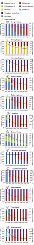 評(píng)估了2015年至2050年間9種儲(chǔ)能技術(shù)在12種應(yīng)用場(chǎng)景下的全生命周期成本。