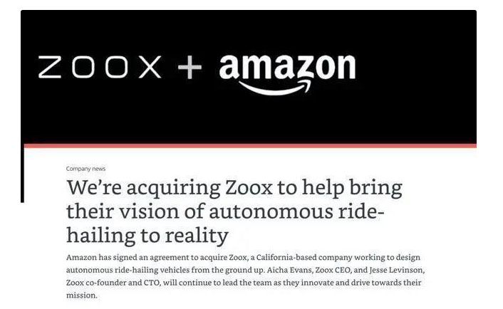6月26日,《金融時報》報道稱亞馬遜以12億美元的價格收購了自動駕駛領(lǐng)域的明星公司ZOOX。