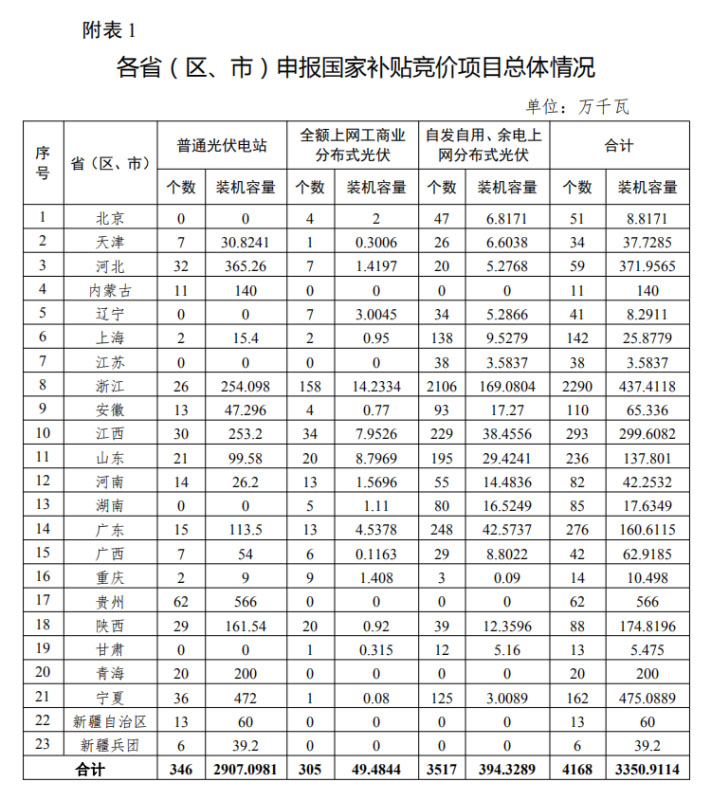 2020年光伏發(fā)電項目國家補貼競價工作總體情況