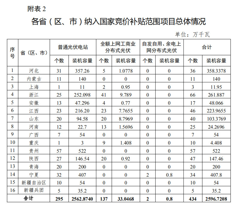 納入競價補貼范圍項目總體情況詳見附表2。