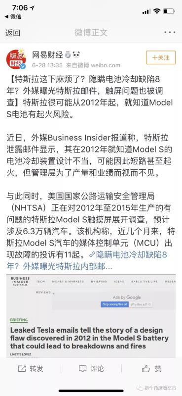 隨后網(wǎng)易財(cái)經(jīng)發(fā)文,特斯拉動(dòng)力電池總成的冷卻系統(tǒng)存在隱患同時(shí),美國(guó)國(guó)家公路運(yùn)輸安全管理局(NHTSA)對(duì)2012-2015年量產(chǎn)的有問(wèn)題的特斯拉Model S觸摸屏展開(kāi)調(diào)查,預(yù)計(jì)設(shè)計(jì)6.3萬(wàn)臺(tái)。