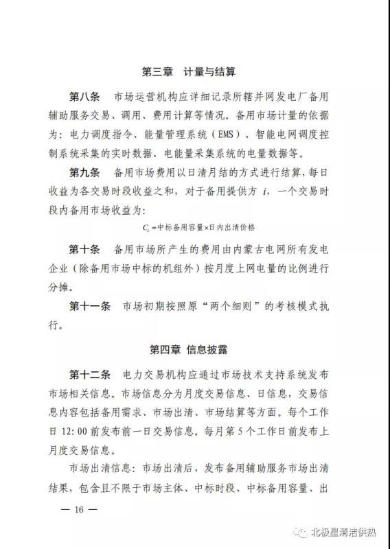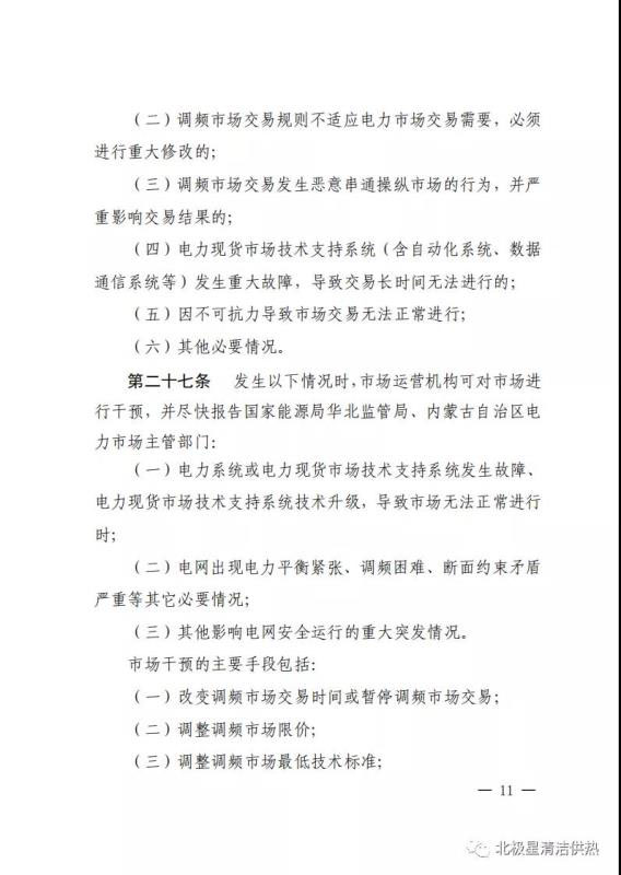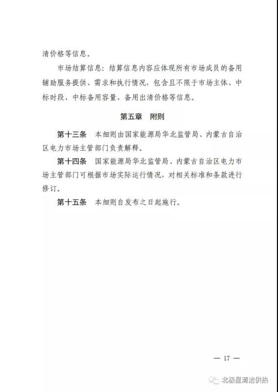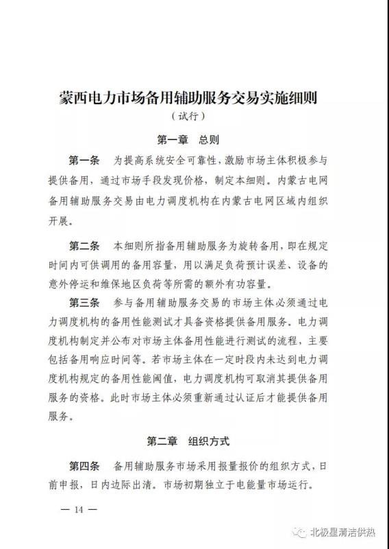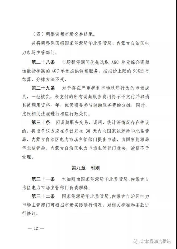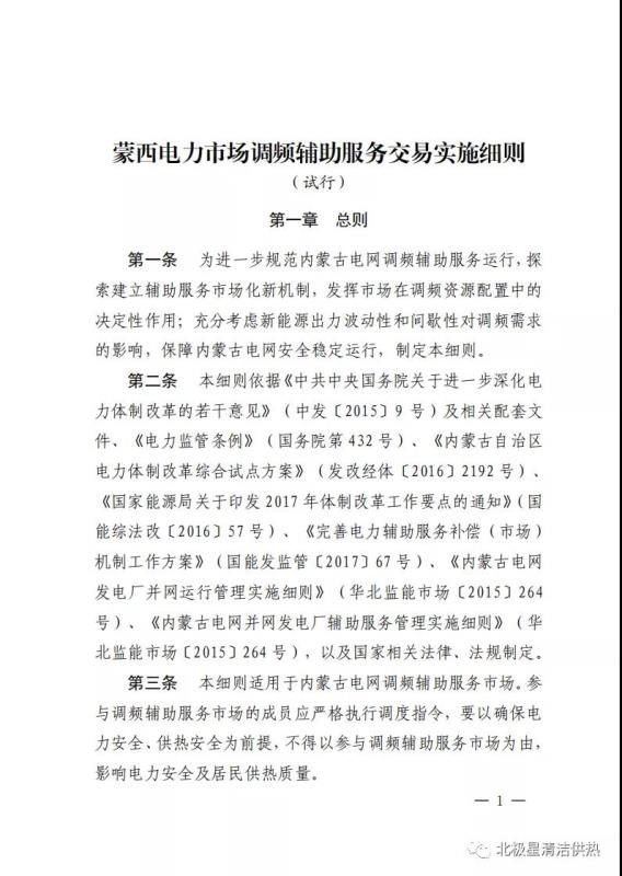 蒙西電力市場調頻、備用輔助服務交易實施細則(試行)
