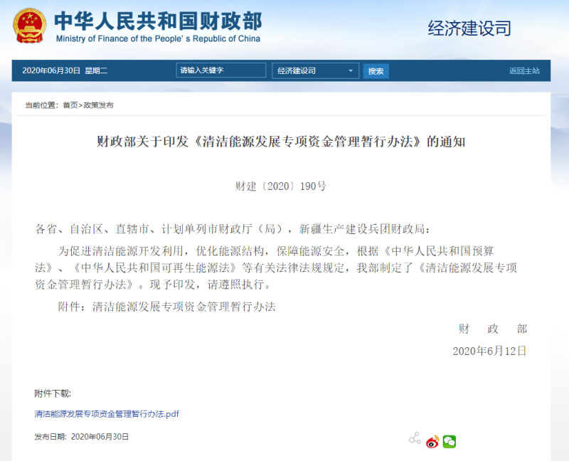 為促進清潔能源開發(fā)利用,優(yōu)化能源結(jié)構(gòu),保障能源安全,根據(jù)《中華人民共和國預(yù)算法》、《中華人民共和國可再生能源法》等有關(guān)法律法規(guī)規(guī)定,我部制定了《清潔能源發(fā)展專項資金管理暫行辦法》?,F(xiàn)予印發(fā),請遵照執(zhí)行。