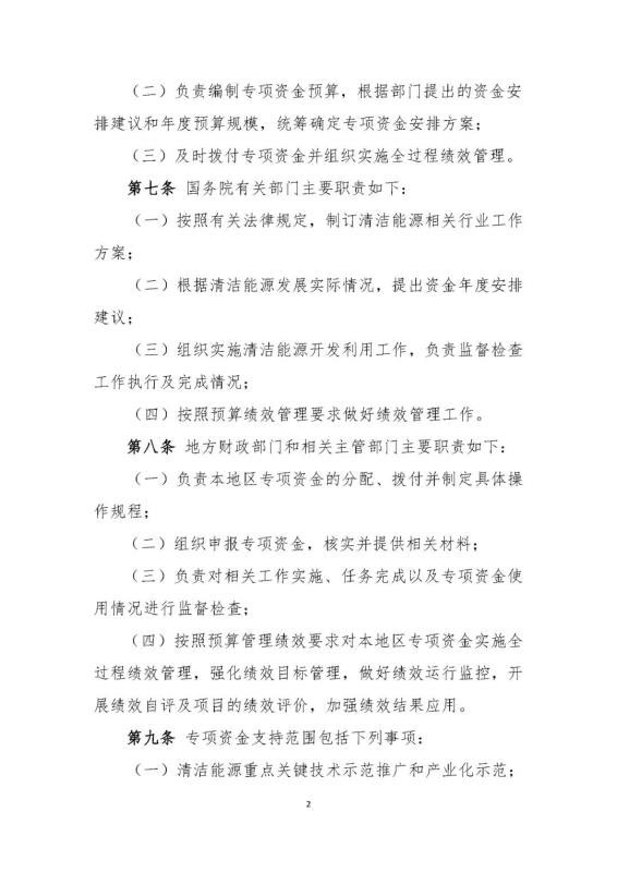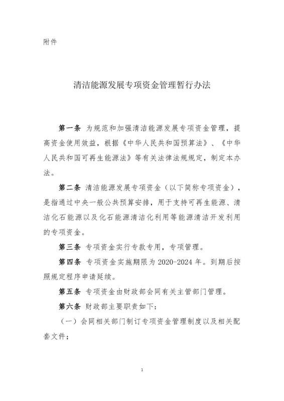 清潔能源發(fā)展專項資金(以下簡稱專項資金),是指通過中央一般公共預(yù)算安排,用于支持可再生能源、清潔化石能源以及化石能源清潔化利用等能源清潔開發(fā)利用的專項資金。專項資金實行??顚S茫瑢m椆芾怼?