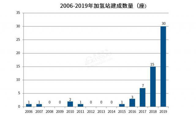 加氫站方面,2019 年我國加氫站建成 30 座,同比增加 100%。從 2006 年第一座加氫站落地開始,截止到 2019 年底,我國累計建成 61 座加氫站。如今,氫能基礎(chǔ)設(shè)施越來越受到重視,按照 2019 年增長速度,2020 年實現(xiàn)“ 100 座加氫站”的目標(biāo)大有希望。