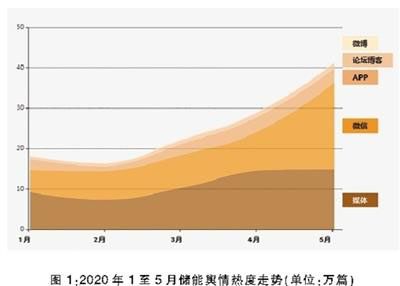 【解讀】 2020年1—5月,“儲(chǔ)能”輿情熱度呈上升態(tài)勢(shì)。年初,行業(yè)以反思2019年發(fā)展態(tài)勢(shì)為主,認(rèn)為電網(wǎng)側(cè)儲(chǔ)能“急剎車”帶來(lái)產(chǎn)業(yè)調(diào)整空間。此后,國(guó)家電網(wǎng)發(fā)文重提儲(chǔ)能建設(shè),各地方、企業(yè)儲(chǔ)能項(xiàng)目發(fā)展亮眼,“新基建”“新能源”帶動(dòng)儲(chǔ)能話題迅速升溫。全國(guó)“兩會(huì)”期間,支持儲(chǔ)能產(chǎn)業(yè)、新能源充電樁建設(shè)寫(xiě)入政府工作報(bào)告,代表委員熱議儲(chǔ)能話題,將輿情熱度推至高點(diǎn)。