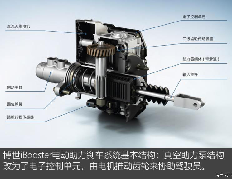 作為一款純電動汽車,特斯拉正是采用了來自博世的iBooster電動助力剎車系統(tǒng)。相比傳統(tǒng)的真空助力泵,電動助力剎車可以通過軟件定義剎車曲線來調(diào)節(jié)剎車踏板腳感,同時由于電驅(qū)的高效特性,它實現(xiàn)了更高的能效,此外,這套系統(tǒng)還具備了更加高效的動能回收能力。