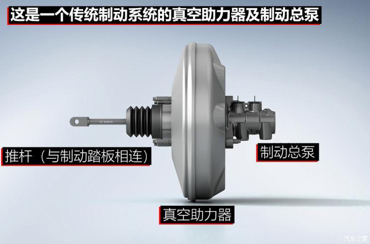 作為燃油車來說,車輛的所有元器件運轉(zhuǎn)所需的能量均來自于車輛油箱內(nèi)的燃油,因此在汽車誕生的100多年間,工程師們有許多奇思妙想,讓汽車通過各種機械裝置來實現(xiàn)人們所期望的功能,剎車系統(tǒng)就是其中之一。在汽車剎車時,需要剎車片對剎車盤施加很大的壓力,這單靠駕駛員的“腳力”很難實現(xiàn)高效的剎車效果。而工程師們想到的辦法是制造一個中間隔開的密封結(jié)構(gòu),利用發(fā)動機進氣系統(tǒng)“吸”走一側(cè)的空氣,這樣結(jié)構(gòu)兩端產(chǎn)生了壓力差,就可以協(xié)助駕駛員一起推動液壓系統(tǒng),從而產(chǎn)生制動力,這樣的機構(gòu)稱之為真空助力泵。