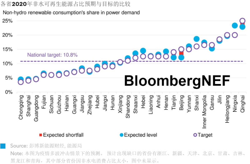 《可再生能源電力消納保障機(jī)制》今年正式生效,要求電網(wǎng)運(yùn)營商、電力零售商和電力大用戶2020年非水電消費(fèi)占比達(dá)到10.8%。彭博新能源財經(jīng)預(yù)計,大多數(shù)省份能超額完成目標(biāo),未達(dá)標(biāo)的主體可購買超額消納量以完成消納量。綠證市場整體供過于求,價格估計持續(xù)低迷。