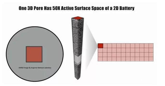 一個3D孔的活性表面空間是一個2D電池的50倍