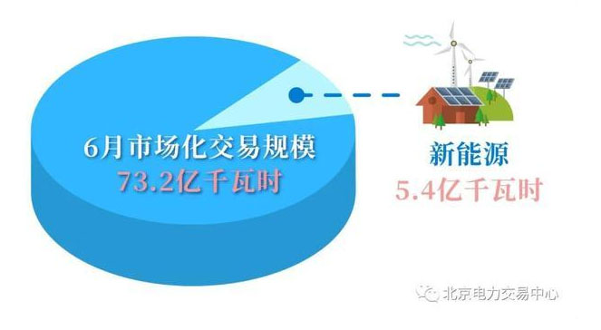 2020年6月,北京電力交易中心在年度交易基礎(chǔ)上,開展月度、月內(nèi)省間市場化交易18筆,交易規(guī)模73.2億千瓦時,其中,新能源5.4億千瓦時。