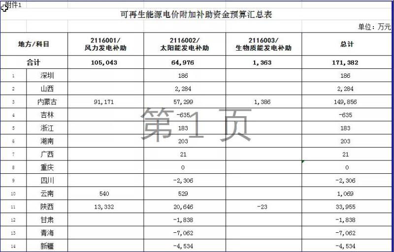 附件:1.可再生能源電價附加補助資金預算匯總表