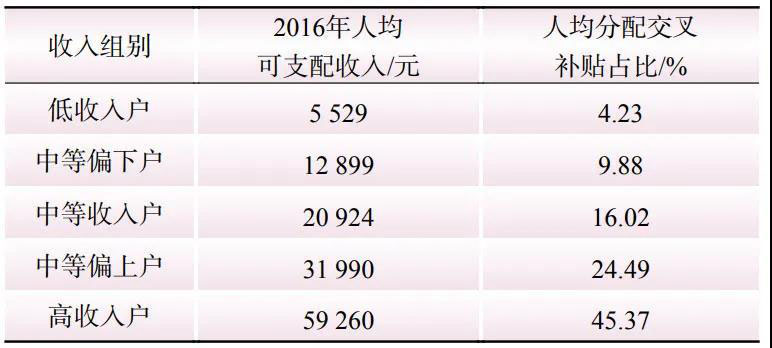 圖3 交叉補貼對不同收入水平居民的福利影響