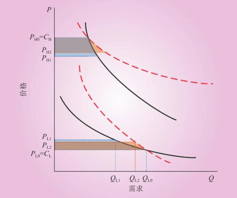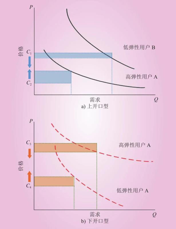圖1 基于需求價格彈性的電價交叉補貼“開口”形態(tài)