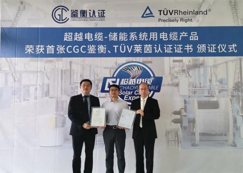 7月7日,CGC北京鑒衡認(rèn)證中心聯(lián)合TüV萊茵共同為常州超越特種電纜有限公司(簡(jiǎn)稱:超越電纜)頒發(fā)了儲(chǔ)能系統(tǒng)用電纜認(rèn)證證書。