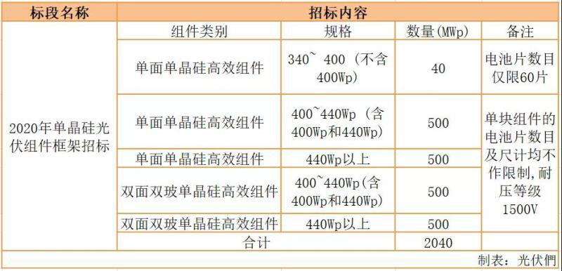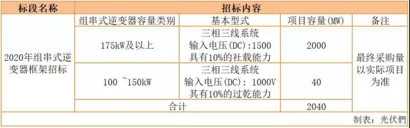 根據(jù)招標公告,本招標項目劃分為2個標段:單晶硅光伏組件框架招標;組串式逆變器框架招標,詳情如下: