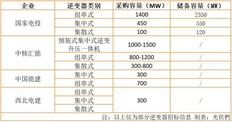 值得注意的是,華電此次招標的逆變器全部為組串式逆變器。近年來,受系統(tǒng)設計更靈活、故障發(fā)生時的損失較低且生命周期維護成本更低等優(yōu)勢因素影響,組串式逆變器在全球范圍內得到廣泛應用,2017年出貨量首次超過集中式逆變器,與集中式逆變器共同成為市場主流。但是即便如此,大規(guī)模逆變器集采中,也鮮見僅招標組串式逆變器的情況。以下為近期部分逆變器集采情況: