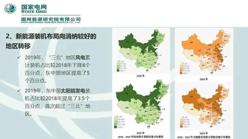 具體來看,新能源裝機布局向消納較好的地區(qū)轉移,2019年中東部太陽能發(fā)電裝機占比較2018年提高了3.5個百分點,首次超過“三北”地區(qū)。