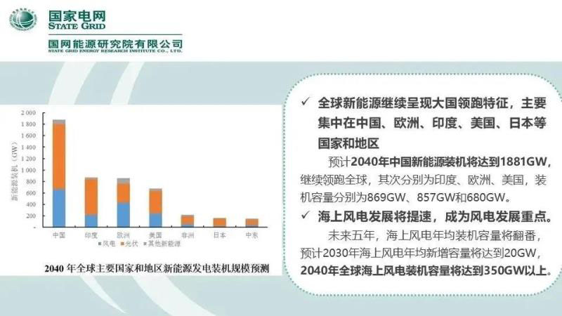 從全球領域來看,全球新能源繼續(xù)呈現(xiàn)大國領跑特征,主要集中在中國、歐洲、印度、美國、日本等國家地區(qū)。預計2040年中國新能源裝機將達到1881GW,其次分別為印度、歐洲、美國,裝機容量分別為869GW、857GW和680GW。