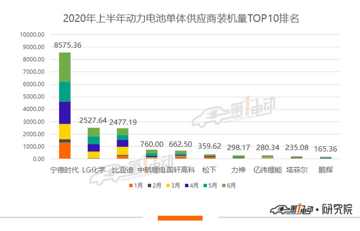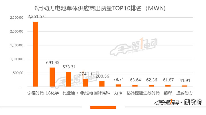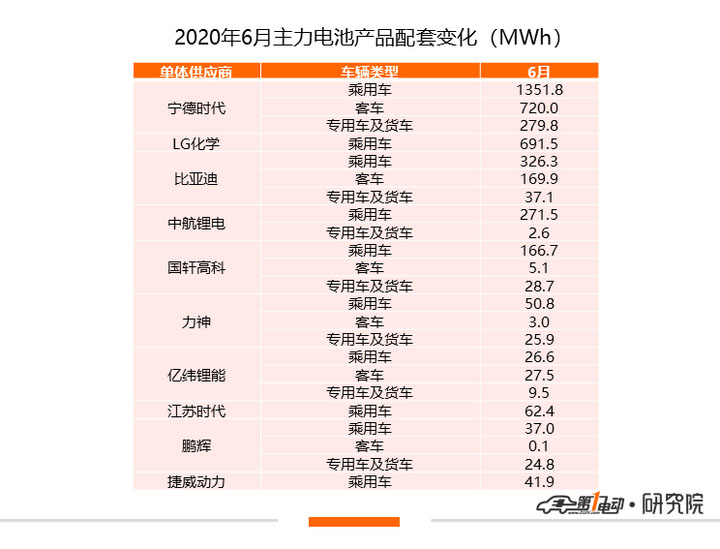 比亞迪的主要搭載車型為比亞迪秦EV、比亞迪e2和比亞迪元EV,裝機(jī)量分別為138.9MWh、45.6MWh和38MWh。6月比亞迪漢沒有產(chǎn)出。