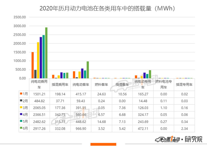 6月新能源乘用車、客車以及專用車的產(chǎn)量環(huán)比分別增長15.4%、79.2%和79.7%,故總裝機(jī)量也隨之水漲船高。