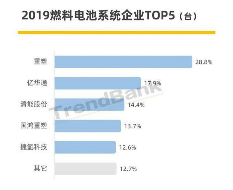 如今,在國家新政發(fā)布后,各地方政府積極響應(yīng),并出臺一系列規(guī)劃和鼓勵政策,燃料電池汽車行業(yè)蒸蒸日上,系統(tǒng)配套企業(yè)也成為了這次補貼新政的鼓勵和支持對象,從2019年度系統(tǒng)企業(yè)市占率可以看出,前五企業(yè)基本占據(jù)市場80%份額,市場集中度非常高,一定意義上來說不利于市場的發(fā)展。