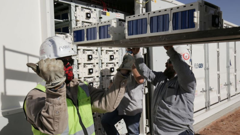 美國(guó)能源開(kāi)發(fā)商Broad Reach Power公司工作人員正在部署電池儲(chǔ)能項(xiàng)目