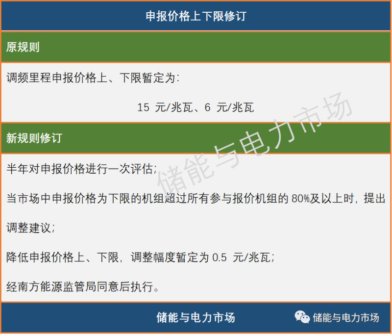 其中申報價格上下限、容量及里程補償規(guī)則,直接關(guān)系到調(diào)頻服務(wù)的補償收益。具體修訂如下: