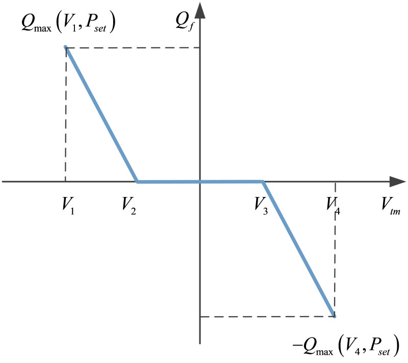 建立分布式電源模型,采用電壓、無(wú)功(U-Q)下垂特性控制策略,根據(jù)分布式電源出口電壓調(diào)節(jié)分布式電源無(wú)功出力,改善分布式電源并網(wǎng)點(diǎn)電壓越限現(xiàn)象,在不明顯增大線路損耗的情況下可有效緩解節(jié)點(diǎn)電壓越限問題。