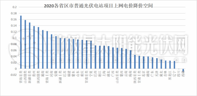 事實上,梳理各類光伏項目的可降價空間也可一見端倪。2019年,工商業(yè)分布式光伏補貼為0.1元/千瓦時,三類資源區(qū)集中式光伏電站可降價空間超過0.1元/千瓦時的有10個??;而2020年,工商業(yè)分布式光伏補貼降低為0.05元/千瓦時,普通光伏電站可降價空間超過這一標準的多達26個省,分布式光伏的競價優(yōu)勢進一步縮小。
