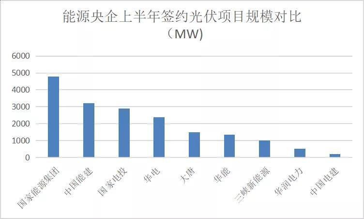 各大能源央企簽約光伏項目如下所示:從簽約規(guī)模來看,今年上半年國家能源集團(tuán)簽約獲得的光伏項目規(guī)模最大,為4.8GW,位列前三甲的還有中國能建,國家電投,簽約項目分別為3.2GW、2.9GW。