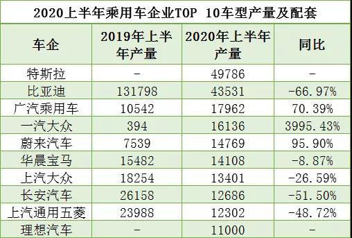 數(shù)據(jù)表現(xiàn)最為直觀。2020年上半年產(chǎn)量前10企業(yè)累計(jì)生產(chǎn)20.56萬輛新能源乘用車,占乘用車總產(chǎn)量的65.5%。其中自主品牌車企僅比亞迪、廣汽和長安3家,累計(jì)生產(chǎn)7.4萬輛,占前十企業(yè)的比例36%,不足4成。