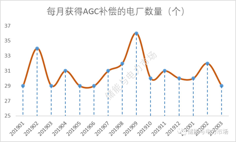 每月獲得過AGC輔助服務補償?shù)臋C組平均數(shù)量為31臺,考慮到此為月度數(shù)據(jù),預計每日提供AGC調頻服務的機組應該為20多臺,和廣東等區(qū)域類似。