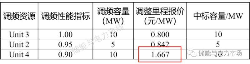 上圖中,unti4的調整里程報價為市場出清里程報價:1.667元/MW。