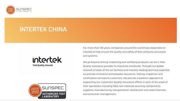 Intertek作為全球領(lǐng)先的全面質(zhì)量保障服務(wù)機(jī)構(gòu),擁有遍布全球的授權(quán)實(shí)驗(yàn)室網(wǎng)絡(luò),能提供快速專業(yè)的一站式解決方案。Intertek 中國(guó)可再生能源部門擁有全套逆變器、儲(chǔ)能變流器、零配件和儲(chǔ)能系統(tǒng)檢測(cè)設(shè)備,同時(shí)擁有EMC實(shí)驗(yàn)室,步入式環(huán)境實(shí)驗(yàn)室和外殼防護(hù)等級(jí)(IP等級(jí))測(cè)試實(shí)驗(yàn)室 ,是IEC(國(guó)際電工委員會(huì)),CNAS(中國(guó)合格評(píng)定國(guó)家認(rèn)可委員會(huì)),OSHA(美國(guó)職業(yè)安全和健康署) 認(rèn)可實(shí)驗(yàn)室。成為SunSpec授權(quán)實(shí)驗(yàn)室后Intertek將為可再生能源領(lǐng)域客戶帶來更多優(yōu)質(zhì)高效的本土化服務(wù)。