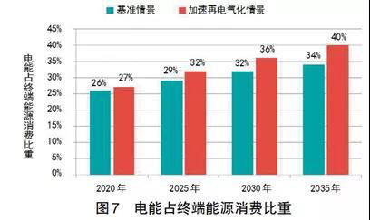 在加速再電氣化情景下,2035年我國電力消費(fèi)總量將增長到12.2萬億千瓦時(shí)左右,發(fā)電能源占一次能源消費(fèi)比重將提升到60%左右,電能占終端能源消費(fèi)比重將提升到40%左右,清潔能源和新能源發(fā)電量占比將分別提升到62%和30%左右。