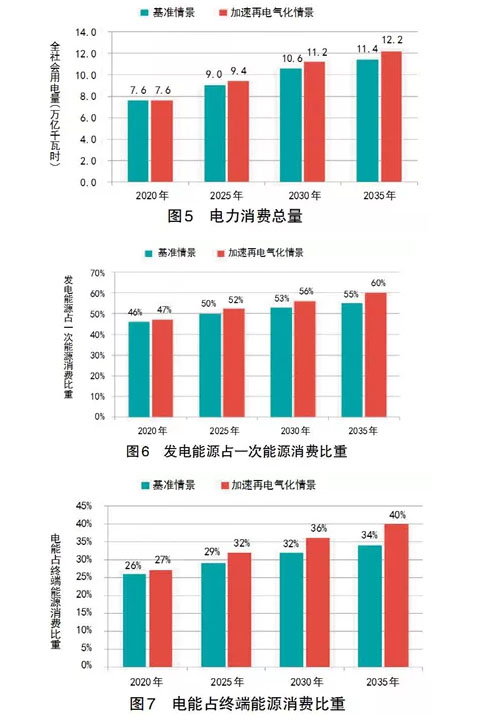 按照我國到2035年基本實(shí)現(xiàn)社會(huì)主義現(xiàn)代化的目標(biāo)、加快推進(jìn)生態(tài)文明建設(shè)和《能源生產(chǎn)和消費(fèi)革命戰(zhàn)略(2016~2030)》的要求,結(jié)合新能源技術(shù)和電能替代技術(shù)發(fā)展趨勢,對(duì)未來再電氣化進(jìn)程設(shè)定兩種不同發(fā)展情景。