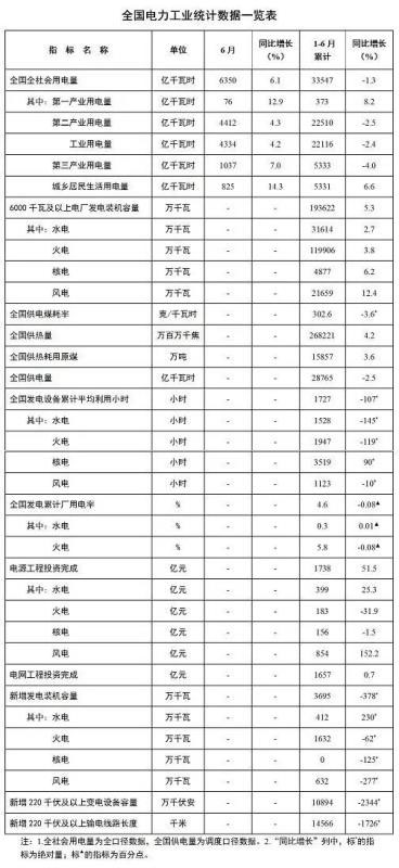 7月16日,國家能源局發(fā)布1-6月份全國電力工業(yè)統(tǒng)計(jì)數(shù)據(jù)。