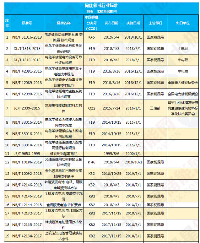 據(jù)北極儲能網(wǎng)不完全統(tǒng)計,目前我國現(xiàn)行標(biāo)準(zhǔn)體系中儲能及其相關(guān)產(chǎn)業(yè)鏈標(biāo)準(zhǔn)文件共計有160項,其中國家標(biāo)準(zhǔn)51項,行業(yè)標(biāo)準(zhǔn)60項,企業(yè)或地方標(biāo)準(zhǔn)49項 。關(guān)于儲能標(biāo)準(zhǔn)體系建設(shè),美國、澳大利亞等主要國家都在積極探索,目前常用的儲能國際標(biāo)準(zhǔn)主要有14項。中國國內(nèi)的儲能標(biāo)準(zhǔn)主要涉及了儲能系統(tǒng)、儲能電池及儲能應(yīng)用等方面,但對并網(wǎng)調(diào)試、產(chǎn)品檢測、尤其是消防安全、運維管理等方面仍有欠缺。