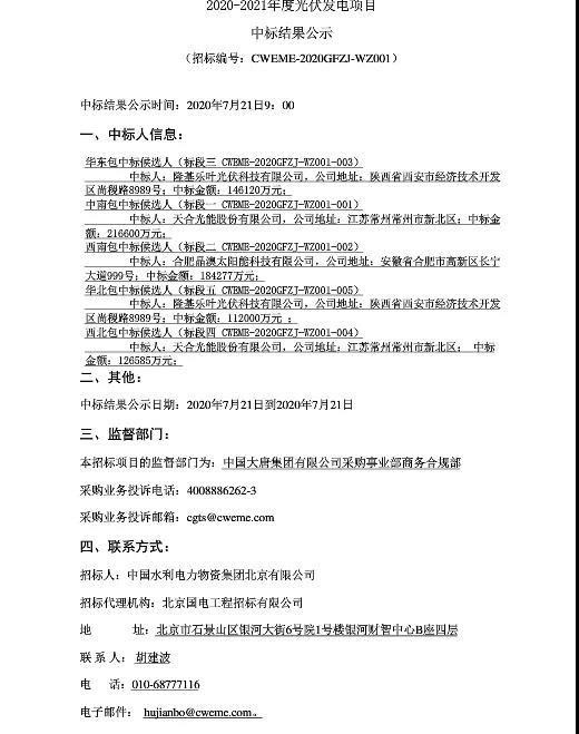 7月21,大唐公示2020-2021年度光伏組件采購(gòu)中標(biāo)結(jié)果。