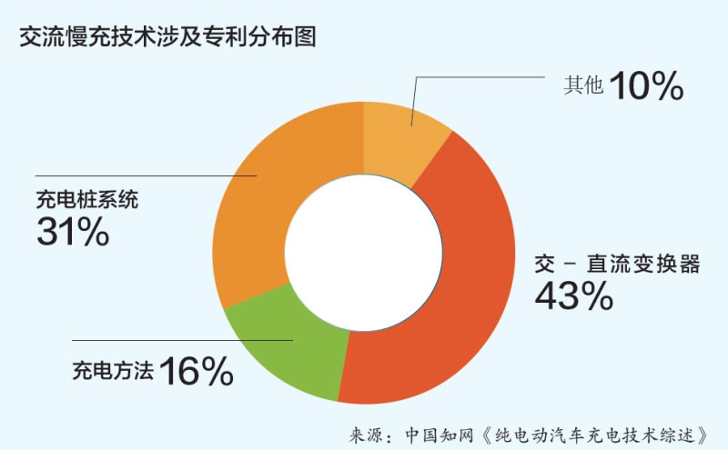 中國專利中心數(shù)據(jù)庫檢索數(shù)據(jù)顯示,截止到2019年10月,我國純電動汽車充電技術相關專利申請 3505件,其中,涉及交流慢充技術的專利申請為 729 件、直流快充技術為 816件。這表明,目前我國純電動汽車充電技術中的研發(fā)主流為直流快充技術,這也與用戶對縮短充電時間的需求相適應。