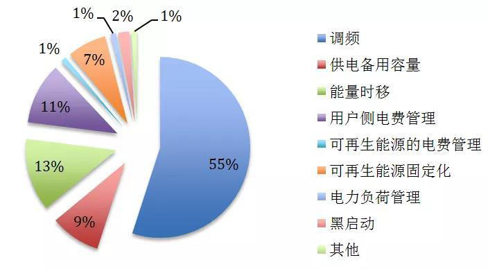 以調(diào)頻為代表的輔助服務(wù)市場是目前全球儲能產(chǎn)業(yè)最具商業(yè)價值的應用領(lǐng)域。從儲能市場應用來看,根據(jù)DOE數(shù)據(jù),2018年,有一半以上的儲能項目參與了頻率調(diào)節(jié)市場(見圖3)。根據(jù)BNEF統(tǒng)計,2016年、2017年,兆瓦級儲能項目累計裝機中,調(diào)頻應用占比分別為41%、50%。在傳統(tǒng)能源結(jié)構(gòu)中,電網(wǎng)短時間內(nèi)的能量不平衡是由傳統(tǒng)機組通過響應AGC信號來進行調(diào)節(jié)的。而隨著新能源并網(wǎng),風光的波動性和隨機性使得電網(wǎng)短時間內(nèi)的能量不平衡加劇,傳統(tǒng)能源由于調(diào)頻速度慢,在響應電網(wǎng)調(diào)度指令時具有滯后性,有時會出現(xiàn)反向調(diào)節(jié)之類的錯誤動作,因此不能滿足新增的需求。相較而言,儲能(特別是電化學儲能)調(diào)頻速度快,電池可以靈活地在充放電狀態(tài)之間轉(zhuǎn)換,是非常好的調(diào)頻資源。
