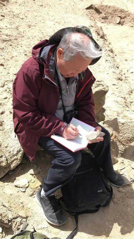 一位老人以樹枝為杖,艱難行走在思茅盆地雜草叢生的小徑,鄭綿平的學(xué)生張雪飛應(yīng)采訪邀請(qǐng)發(fā)來這一照片,“這是鄭院士正帶我們做云南鉀鹽科考項(xiàng)目”,她解釋說,“時(shí)間是2020年1月,春節(jié)前夕”。只有一行人背影的模糊小照,讓記者聯(lián)想起27年前在西藏采訪時(shí)第一次見到鄭院士的場(chǎng)景——被高原風(fēng)蝕成的經(jīng)典藏民面孔和難以聽懂的福建口音。86歲了,還在出野外!