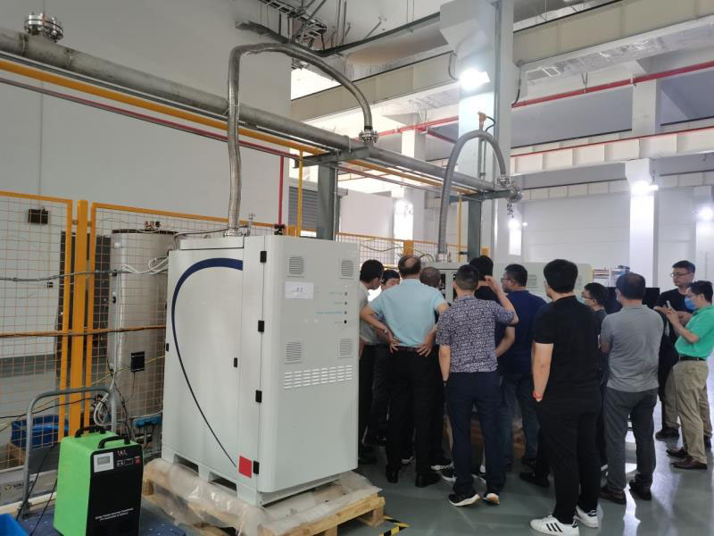 座談結束后,蔡信帶著調研團參觀了公司,并向調研團專家展示了公司5KW燃料電池熱電聯(lián)產系統(tǒng)的組成模塊、產品性能、系統(tǒng)優(yōu)勢和安裝場景,并介紹了產品的國內外市場情況以及公司產業(yè)化和低成本化的定位。5kW產品電功率5kW,同時具備最大熱功率7.5kW。系統(tǒng)內部集成天然氣重整制氫模塊,只需接入天然氣即可正常工作,在目前氫能基礎設施建設相對薄弱的現(xiàn)狀下,具有較為廣泛的場景適應性。系統(tǒng)電功率35%,熱功率54-57%,熱電聯(lián)產總效率高達90%。公司目前已簽訂訂單價值千萬元,年底將交付數(shù)十套系統(tǒng)給客戶。