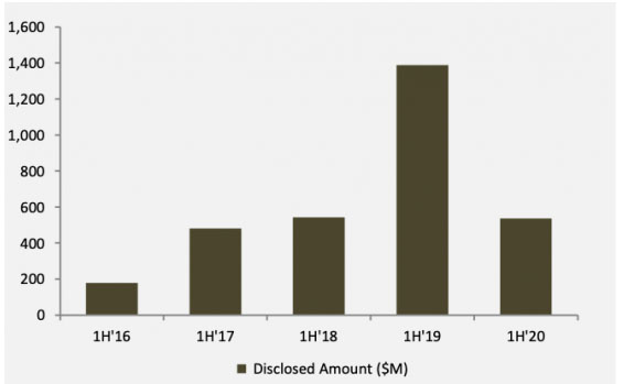 如今的市場并購活動仍在繼續(xù),今年上半年總共完成了8筆交易,而2019年上半年只有6筆交易,不過今年上半年的并購交易并沒有披露財務細節(jié)。