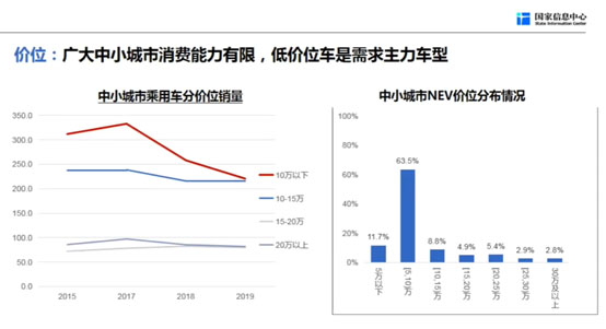 適用的產(chǎn)品是什么樣的?廣大中小城市消費(fèi)能力是非常有限的。從傳統(tǒng)的車(chē)型來(lái)看,10萬(wàn)元以下的車(chē)型是廣大的中小城市需求的主體,更不用說(shuō)農(nóng)村地區(qū)了;新能源汽車(chē)分布的價(jià)位也是10萬(wàn)元以下為主體。當(dāng)然5—10萬(wàn)是一個(gè)很重要的市場(chǎng),因?yàn)檠a(bǔ)貼變化以后,5萬(wàn)元的車(chē)型拿到國(guó)家補(bǔ)貼可能比較難,所以大家都傾向于5—10萬(wàn)。