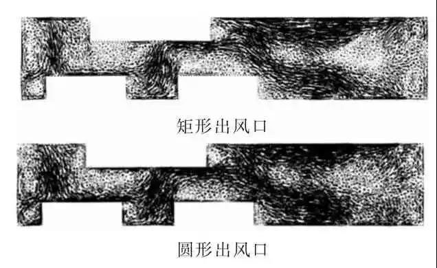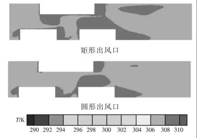 圖5 出風(fēng)口形狀對(duì)溫度分布的影響