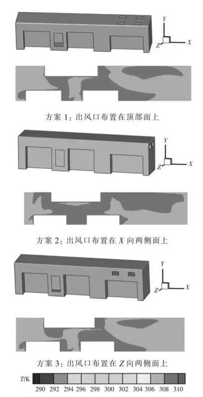 圖3 出風(fēng)口位置對(duì)溫度分布的影響